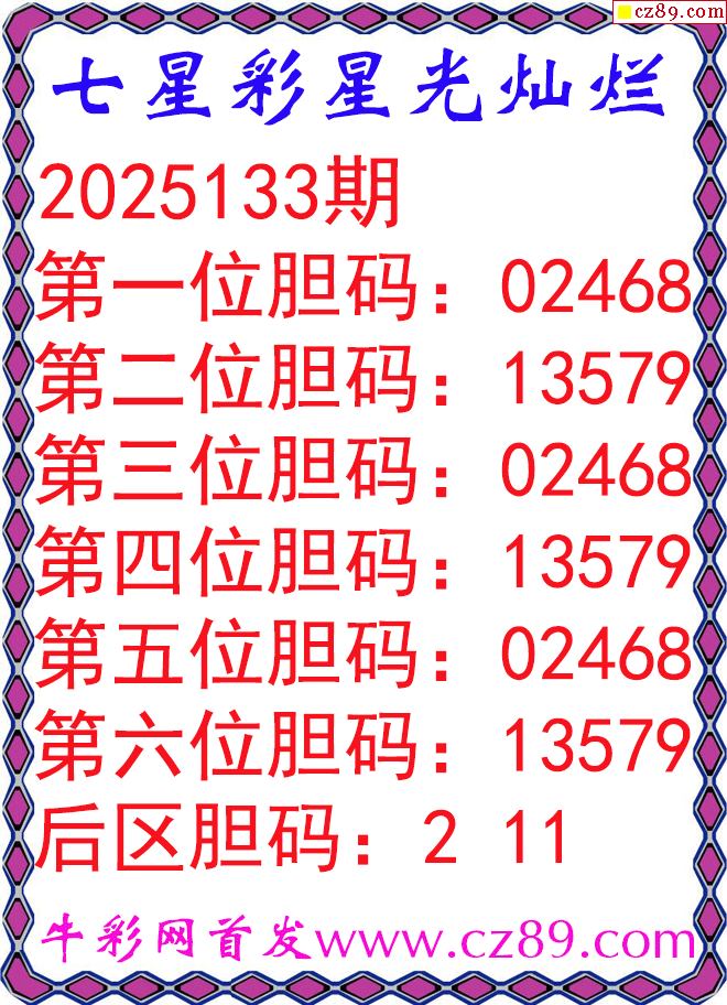 首页 > 七星彩预测 > 七星彩2025133期星光灿烂五码图谜