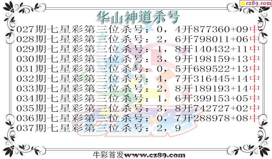 七星彩2026037期华山神道杀号图迷 10中10