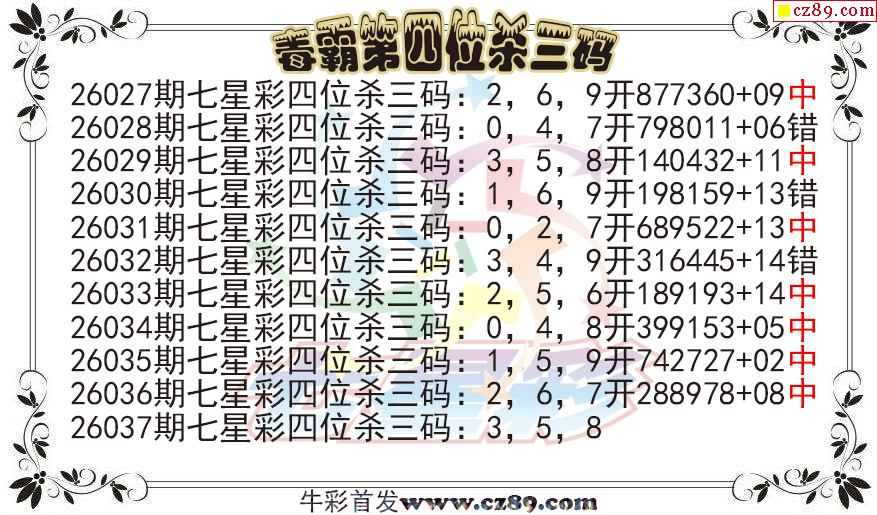 七星彩2026037期毒霸第四位杀三码图迷 10中7